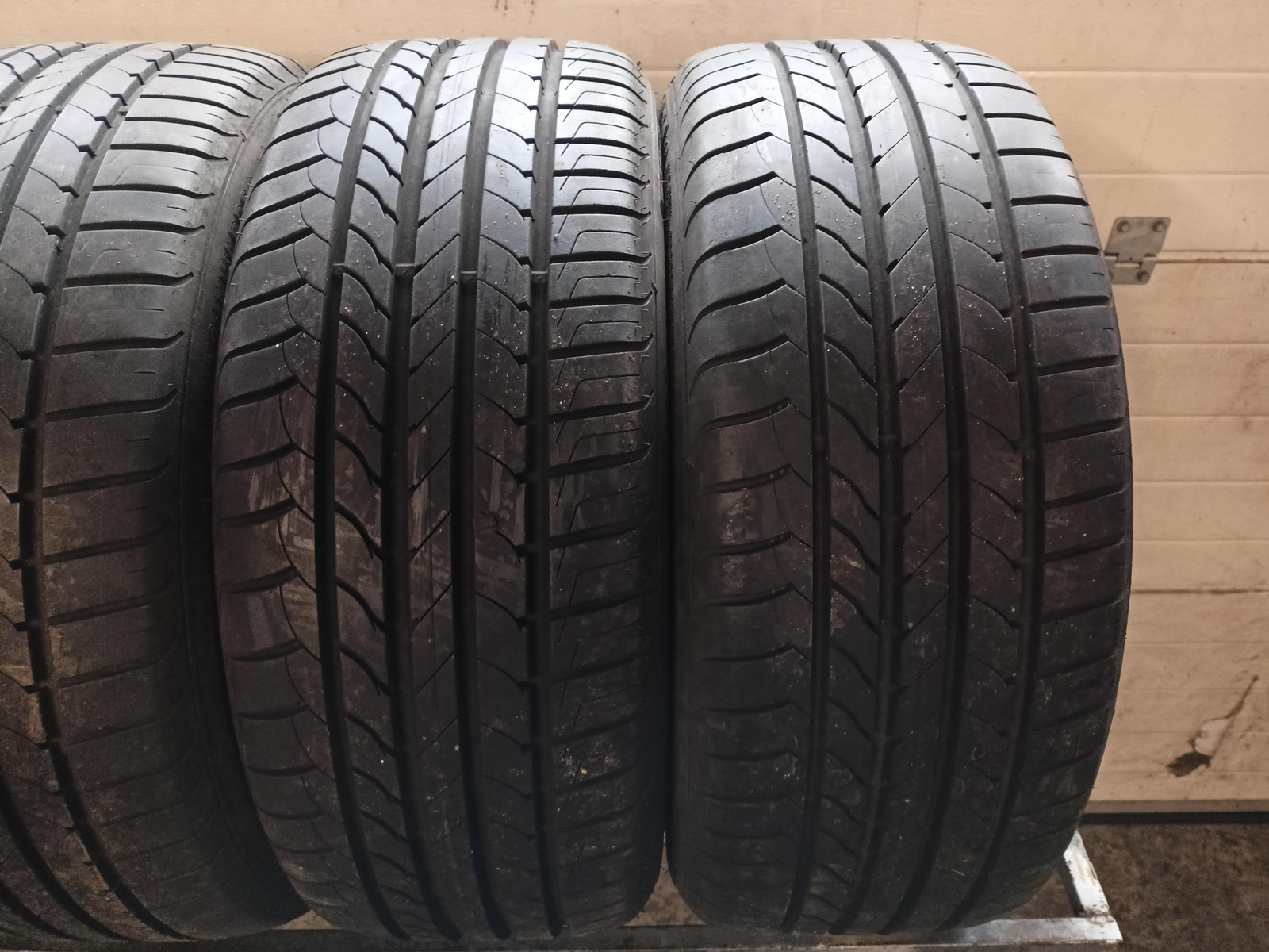 Opony używane, sprawdzane ciśnieniowo, jedna z opon posiada łatkę.