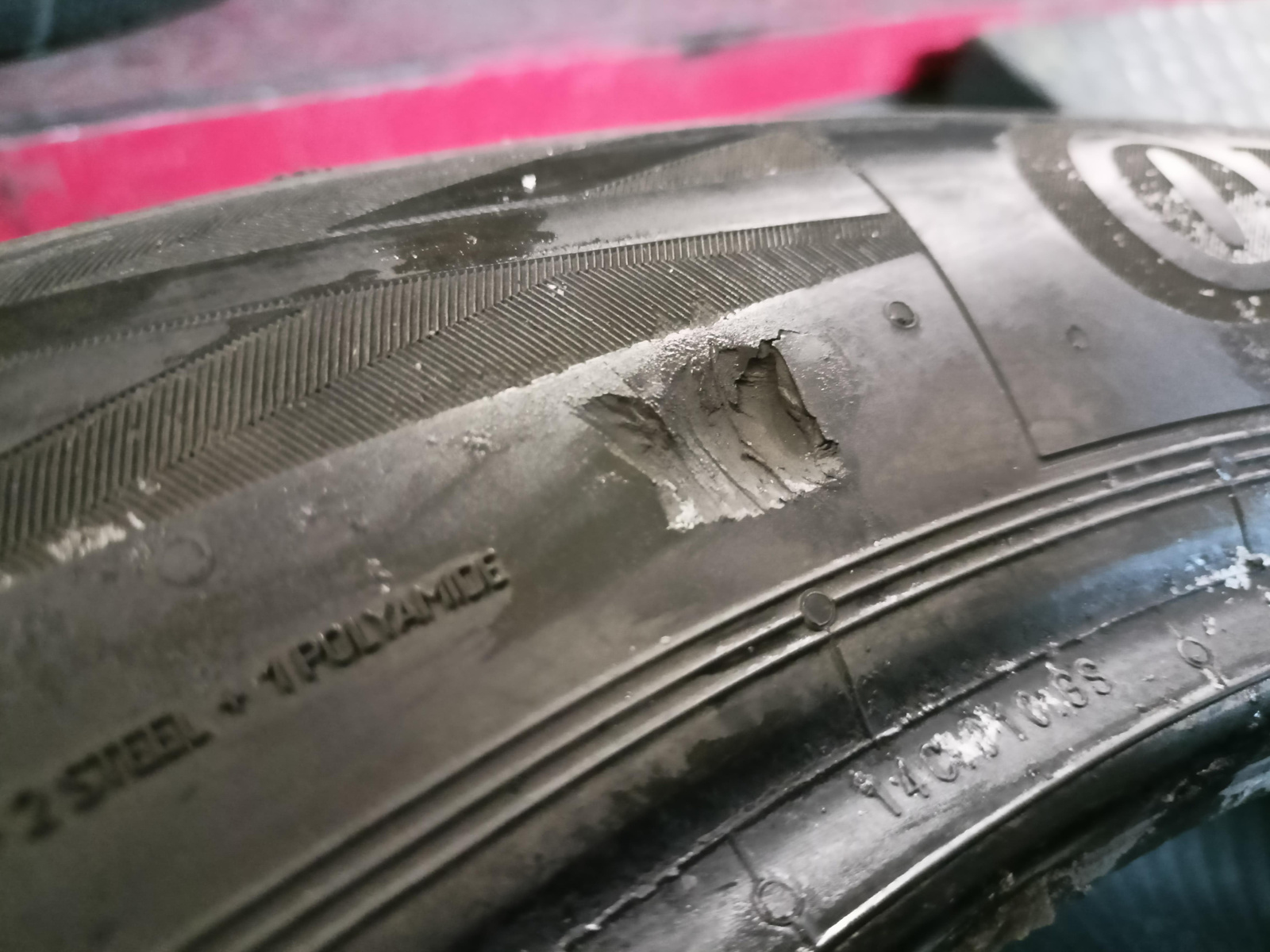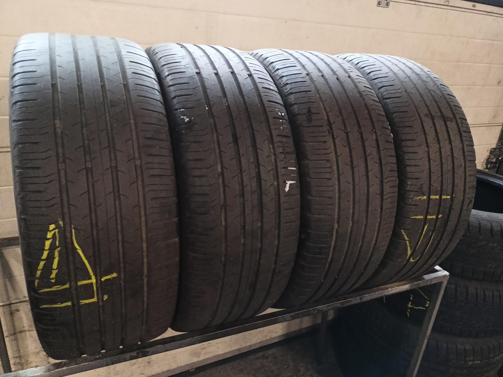 Sprawdzone ciśnieniowo, nie były naprawiane, nie posiadają żadnych wybrzuszeń. Jedna z opon ma delikatnie uszczypnięty bok opony.
