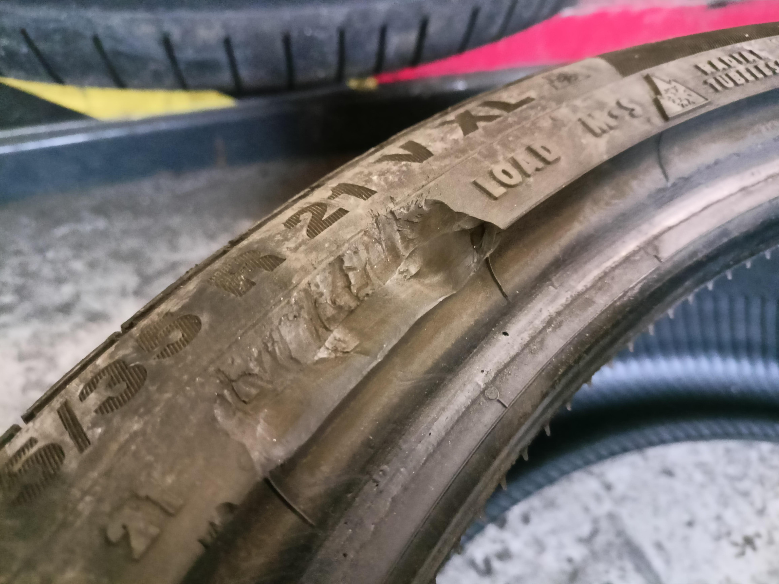 Sprawdzone ciśnieniowo, nie posiadają wybrzuszeń. Jedna z opon posiada łatkę oraz delikatnie uszczypnięty rant ochronny, opony mają delikatnie podjechane boki.