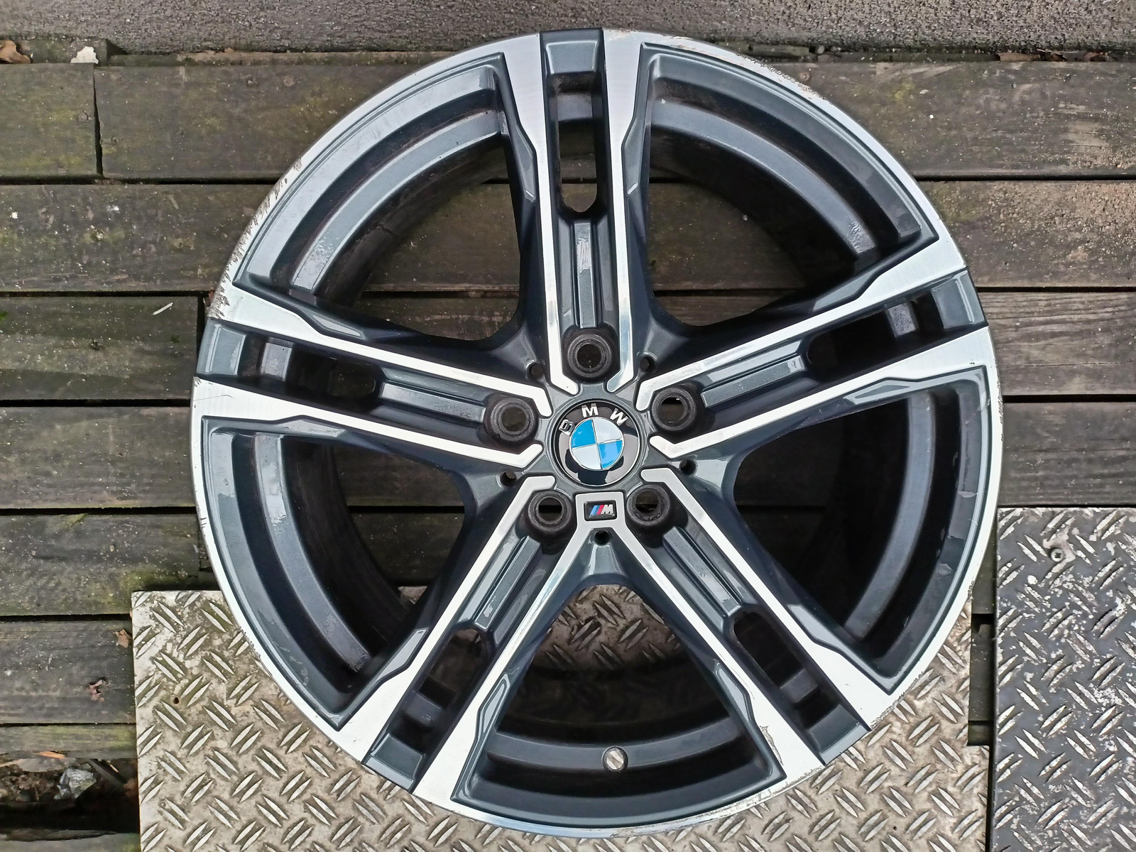 Felga używana, niemalowana, niespawana, nieprostowana. Posiada zarysowania/otarcia widoczne na załączonych zdjęciach.