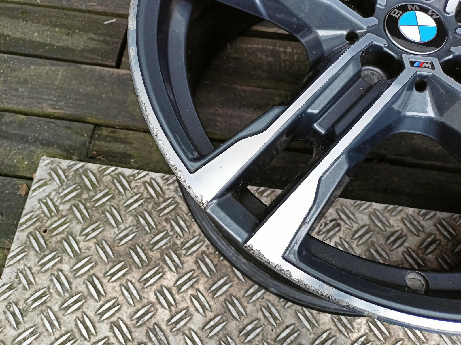 Felga używana, niemalowana, niespawana, nieprostowana. Posiada zarysowania/otarcia widoczne na załączonych zdjęciach.